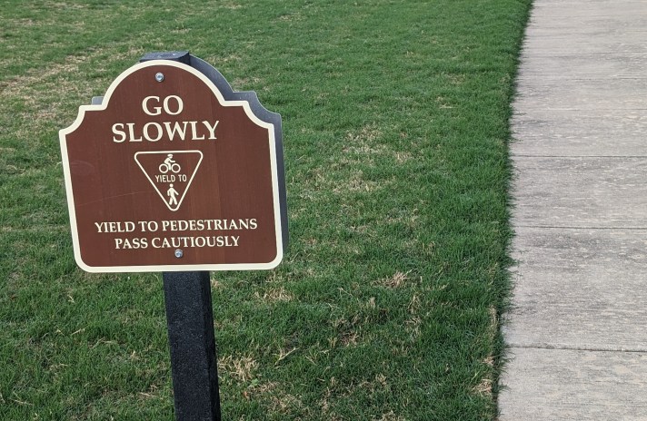 Then I came across a sign on the path. You’re not going to believe this. The sign said, GO SLOWLY. Sure, it was intended to help cyclists and pedestrians share the path, but clearly it was also intended for me.